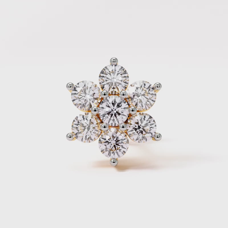 Celestial Bloom Diamond Nose Pin – 7-Stone Floral Cluster | 18K Gold | IGI Certified VVS EF Natural Diamonds